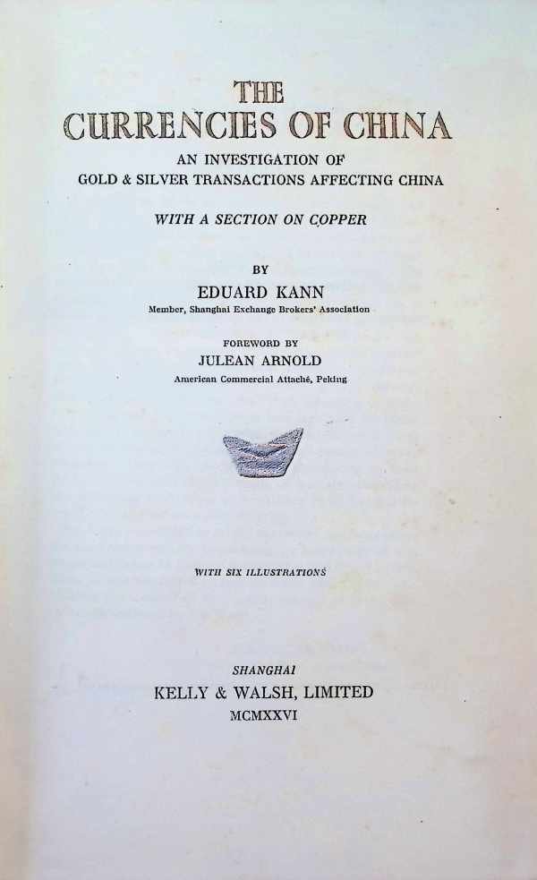 Dit is een baanbrekende technische studie van het Chinese monetaire systeem. Geschreven door Eduard Kann, een Oostenrijkse bankier met tientallen jaren ervaring in Shanghai, is het boek ontworpen als een professioneel handboek voor bankiers en edelmetaalhandelaren in plaats van een casual geschiedenis. Sectie I: Zilver (De Monetaire Ruggengraat) Sycees & Taels: Biedt minutieuze details over zilveren staven (sycees) en de tael, die zowel als gewicht als een rekeneenheid diende. Het analyseert verschillende regionale taels (zoals de Haikwan en Shanghai taels) en hun specifieke wisselcomplexiteiten. Buitenlandse & Binnenlandse Dollars: Technische specificaties van zilveren munten, waaronder de Mexicaanse Peso en vroege Chinese Republikeinse dollars, met details over hun exacte gewicht, zilverfijnheid en "assay" (zuiverheidstests). Sectie II: Goud (De Handelsgrondstof) Goudstaafmarkt: Een gedetailleerd verslag van de Shanghai Goudstaafmarkt, waar goud voornamelijk als een grondstof voor internationale afrekening werd behandeld in plaats van als een circulerende valuta. Inspanningen voor de Gouden Standaard: Documenteert de technische en politieke obstakels die China verhinderden om in het begin van de 20e eeuw succesvol over te schakelen naar een echte gouden standaard. Sectie III: Koper (De Valuta van het Volk) Muntproductie & Seigniorage: Onderzoekt de overproductie van koperen "cash" en cents, de technische output van provinciale munten, en hoe de resulterende inflatie de algemene bevolking beïnvloedde. [Deze omschrijving kan vertaald zijn met AI.] Kelly & Walsh, Limited, 1926, Shanghai |