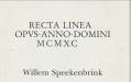 SPEEKENBRINK, WILLEM - Recta linea. Opvs.Anno.Domini MCMXC. Een