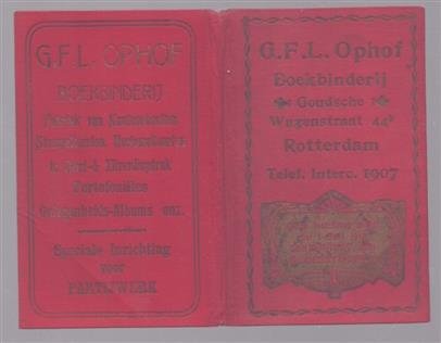 | Bijzonderheden: | 1912, Zeer goed, Gebonden uitgave met op de omslag reclame voor G.F Ophof. Boekbinderij Goudsche Wagenstraat 44 b Rotterdam Telef Interc 1907 Met spoorweg kaartje Nederland in kleur. verder dienstregeling c 74p + landkaartje. Achterplat met licht ... |