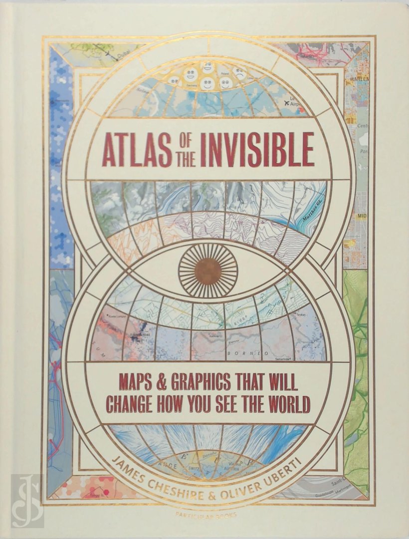 Discover the hidden patterns in human society as you have never seen them before - through the world of data\n\nIn Atlas of the Invisible, award-winning geographer-designer team James Cheshire and Oliver Uberti redefine what an atlas can be. Transforming enormous data sets into rich maps and cutting-edge vizualisations, they uncover truths about our past, reflect who we are today, and highlight what we face in the years ahead. With their joyfully inquisitive approach, Cheshire and Uberti explore happiness and anxiety levels around the globe; they trace the undersea cables and cell towers that connect us; they examine hidden scars of geopolitics; and illustrate how a warming planet affects everything from hurricanes to the hajj.\n\nYears in the making, Atlas of the Invisible invites readers to marvel at the promise and peril of data, and to revel in the secrets and contours of a newly visible world.