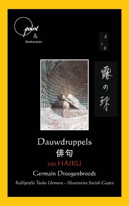 Dauwdruppels - 100 Haiku's is een opmerkelijke en opvallende verzameling haikugedichten, geschreven door Germain Droogenbroodt en uitgegeven door Boekeplan. Hij vertaalde twee verzamelingen van de meest beroemde Japanse haikudichters, zoals Bashô, Issa, Shiki, Busson en andere belangrijke Japanse haikudichters, ook uitgegeven door Boekenplan.\nDeze internationale editie onderscheidt zich door zijn meertalige presentatie, met vertalingen in vijf talen: Nederlands, Japans, Engels, Spaans en Italiaans. De collectie heeft bewondering geoogst van de wereldwijde literaire gemeenschap, inclusief hoge lof van de gewaardeerde Japanse dichter Naoshi Koriyama, die de gedichten indrukwekkend vindt. Deze bloemlezing toont Droogenbroodt's meesterschap in het vangen van de essentie van haiku, een traditionele vorm van Japanse poëzie, en het vertalen ervan in een universele taal die weerklank vindt over culturen heen.\n\n\nMet open armen\nontvangen ze de regen\nde waterlelies\n\n\nDewdrops - 100 Haikus is a remarkable and striking collection of haiku poems, authored by Germain Droogenbroodt and published by Boekenplan. He translated two collections of the most famous Japanese haiku poets, such as Bashô, Issa, Shiki, Busson and other important Japanese haiku poets, also published by Boekenplan. \nThis international edition stands out for its multilingual presentation, featuring translations in five languages: Dutch, Japanese, English, Spanish, and Italian. The collection has garnered admiration from the global literary community, including high praise from the esteemed Japanese poet Naoshi Koriyama, who finds the poems impressive. This anthology showcases Droogenbroodt's mastery in capturing the essence of haiku, a traditional form of Japanese poetry, and translating it into a universal language that resonates across cultures.