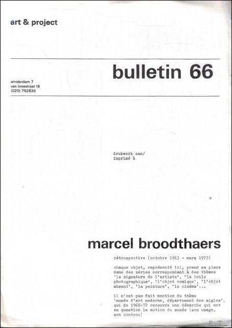 | Titel: | Art & Project Bulletin 66: Marcel Broodthaers |