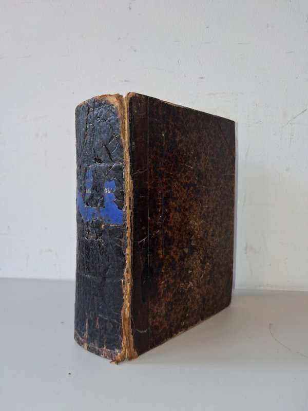 | Bijzonderheden: | Gebonden, halfleer, rug zwart gemaakt, leer sleets op de randen, verder goed. |