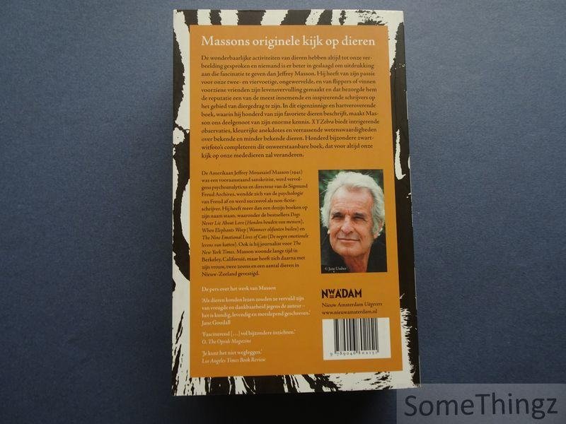 'XYZebra: Een menagerie van 100 favoriete dieren' is opgebouwd als een reeks portretten van honderd diersoorten uit verschillende delen van het dierenrijk. Elk hoofdstuk richt zich op een specifieke soort en combineert wetenschappelijke informatie met anekdotische observaties over gedrag, evolutie en interactie met de omgeving. Masson behandelt zowel bekende zoogdieren als minder bekende of zeldzame dieren en bespreekt hun biologische eigenschappen, sociale structuren en opvallende gedragingen. Daarbij komen onder meer voortplantingsstrategieën, overlevingsmechanismen, intelligentie en emotioneel gedrag van dieren aan bod. De auteur verweeft natuurwetenschappelijke kennis met persoonlijke fascinatie voor diergedrag, waardoor het boek zowel informatief als verhalend van toon is. Door deze aanpak ontstaat een brede panoramische blik op de diversiteit van het dierenrijk en op de vele manieren waarop dieren zich aanpassen aan hun leefomgeving. Het werk fungeert tegelijk als populairwetenschappelijk dierenboek en als een verzameling korte essays over de wonderen van dierlijk gedrag en evolutie. effrey Moussaieff Masson is een Amerikaans auteur, voormalig psychoanalyticus en geleerde op het gebied van Sanskriet. Hij was directeur van de Sigmund Freud Archives voordat hij zich volledig toelegde op het schrijven van boeken over dieren, emoties en mens-dierrelaties. Masson verwierf internationale bekendheid.