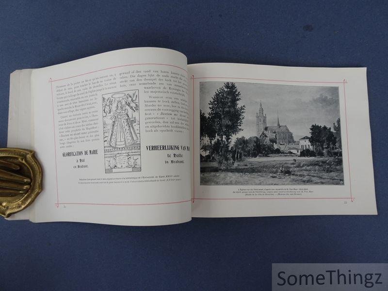 Gedenkboek van O.L. Vrouw van Halle = Souvenir de N.D. de Hal is een religieus gedenkboek uitgegeven ter ere van Onze-Lieve-Vrouw van Halle, het bekende bedevaartsoord in Vlaams-Brabant. Het werk documenteert de geschiedenis, devotiepraktijken, wonderverhalen en feestelijkheden verbonden aan de basiliek en de Mariale verering in Halle. Het boekje is tweetalig (Nederlands en Frans) opgesteld en richt zich zowel tot pelgrims als tot geïnteresseerden in religieuze geschiedenis en volksdevotie. Het bevat tekstuele beschrijving, gebeden en geïllustreerde afbeeldingen van de basiliek, processies en belangrijke evenementen uit het religieuze verleden van de stad. Dit gedenkboek opent met een historische schets van de devotie tot Onze-Lieve-Vrouw van Halle, met terugblik op de oorsprong van de bedevaart en de rol van de basiliek in de lokale en regionale religieuze traditie. Centraal staan de verhalen van gratie en wonderen die aan de verering worden toegeschreven en die doorheen de eeuwen zijn doorgegeven. De tekst belicht processies, bedevaarten en jaarlijkse feestelijkheden rond Maria en koppelt deze aan specifieke afbeeldingen in de publicatie. Verder bevat het gebeden, liturgische teksten en overzichtelijke beschrijvingen van de kerkelijke kunst en architectuur in de basiliek zelf, waardoor dit werk zowel een devotioneel souvenir als een historisch document vormt van de religieuze cultuur van Halle en haar pelgrims. / Le Livre commémoratif de Notre-Dame de Halle est un ouvrage religieux publié en l'honneur de Notre-Dame de Halle, haut lieu de pèlerinage du Brabant flamand. Il documente l'histoire, les pratiques dévotionnelles, les récits de miracles et les festivités liés à la basilique et à la dévotion mariale à Halle. Bilingue (néerlandais et français), il s'adresse aussi bien aux pèlerins qu'à tous ceux qui s'intéressent à l'histoire religieuse et à la dévotion populaire. On y trouve des descriptions, des prières et des illustrations de la basilique, des processions et des événements marquants du passé religieux de la ville. Ce livre commémoratif s'ouvre sur un aperçu historique de la dévotion à Notre-Dame de Halle, retraçant les origines du pèlerinage et le rôle de la basilique dans la tradition religieuse locale et régionale. Au coeur de l'ouvrage se trouvent les récits de grâces et de miracles attribués à la vénération et transmis à travers les siècles. Le texte met en lumière les processions, les pèlerinages et les festivités mariales annuelles, en les associant à des illustrations spécifiques de la publication. Il comprend également des prières, des textes liturgiques et des descriptions claires de l'art et de l'architecture ecclésiastiques de la basilique elle-même, faisant de cet ouvrage à la fois un souvenir de dévotion et un document historique sur la culture religieuse de Halle et de ses pèlerins.