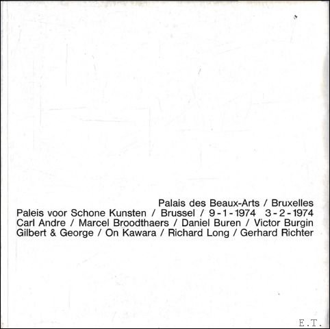 | Titel: | Carl Andre - Marcel Broodthaers - Daniel Buren - Victor Burgin - Gilbert & George - On Kawara - Richard Long - Gerhard Richter. Palais des Beaux-Arts, Bruxelles / Paleis voor Schone Kunsten, Brussel: 9-1-1974 - 3-2-1974 |