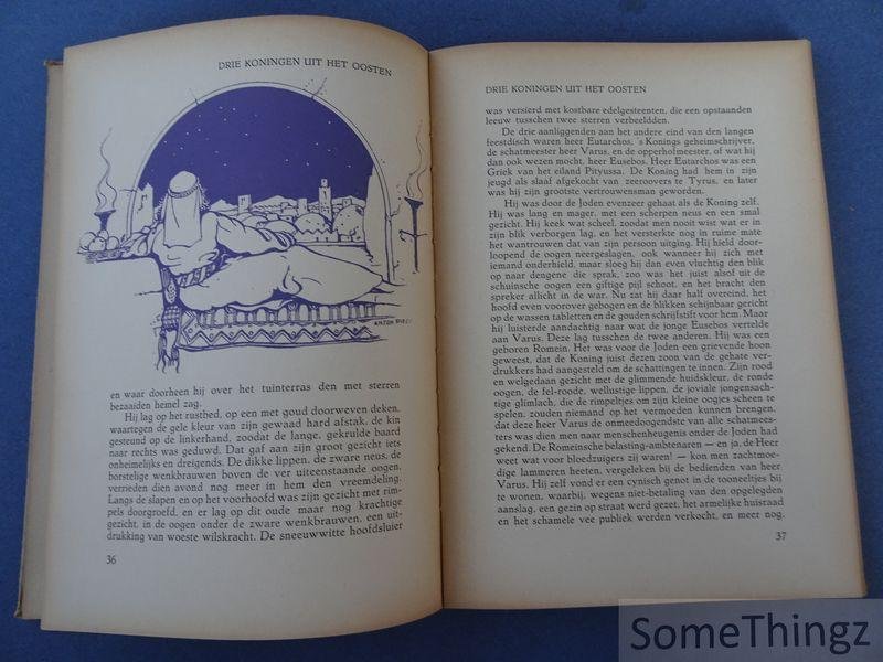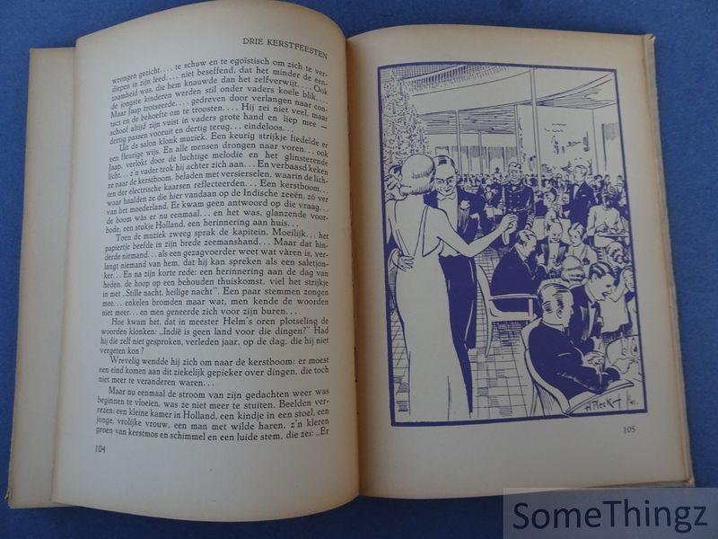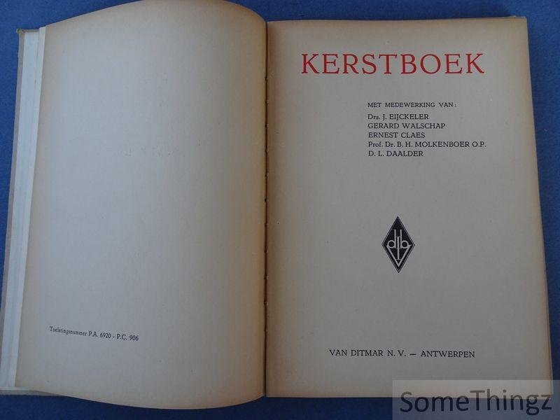 Inhoud: 1) Het kertsverjhaal der evangeliën" door J. Eijckeler, 2) "Wedergeboorte van Christus op aarde" door Gerard Walschap, 3) "Drie koningen uit het Oosten" door Ernest Claes", 4) "Vondel's kerstspel" door Molkenboer, 5) "Drie kerstfeesten" door D.L. Daalder. "Kerstboek" is een literaire bundel waarin vooraanstaande Vlaamse en Nederlandse auteurs het kerstthema vanuit verschillende invalshoeken benaderen. De bijdragen combineren religieuze verdieping met verhalende kracht en culturele reflectie. Het boek biedt een rijke variatie aan teksten die de betekenis van Kerstmis belichten, gaande van evangelische vertellingen tot beschouwende en literaire interpretaties, en vormt zo een sfeervol geheel dat aansluit bij de traditie van het kerstfeest. De bundel bevat vijf afzonderlijke bijdragen die elk een eigen benadering van het kerstthema bieden. "Het kerstverhaal der evangeliën" door J. Eijckeler presenteert een hervertelling van het bijbelse kerstverhaal in een toegankelijke en samenhangende vorm. In "Wedergeboorte van Christus op aarde" onderzoekt Gerard Walschap op beschouwende wijze de actuele betekenis van de incarnatie in de moderne wereld. Ernest Claes brengt met "Drie koningen uit het Oosten" een verhalende en volkse interpretatie van het epifaniemotief. B.H. Molkenboer behandelt in "Vondel's kerstspel" de literaire en religieuze betekenis van het werk van Joost van den Vondel binnen de kersttraditie. Ten slotte biedt D.L. Daalder met "Drie kerstfeesten" een reflectie op de historische en culturele ontwikkeling van kerstvieringen. De bundel vormt aldus een thematisch samenhangend geheel waarin religie, literatuur en cultuurhistorie samenkomen, ondersteund door illustraties die de feestelijke en contemplatieve sfeer versterken. Gerard Walschap (1898-1989) was een van de belangrijkste Vlaamse auteurs van de twintigste eeuw en verwierf bekendheid met zijn psychologisch-realistische romans en kritische reflecties op religie en maatschappij. Ernest Claes (1885-1968) staat bekend om zijn toegankelijke en volkse vertelstijl, waarin het Vlaamse dorpsleven centraal staat. J. Eijckeler, B.H. Molkenboer en D.L. Daalder waren actief binnen het religieuze en literaire veld en publiceerden werken die zich situeren op het snijvlak van geloof, cultuur en literatuur. Hun bijdragen aan deze bundel illustreren de veelzijdigheid van het kerstthema binnen de Nederlandstalige literatuur van de jaren 1940.