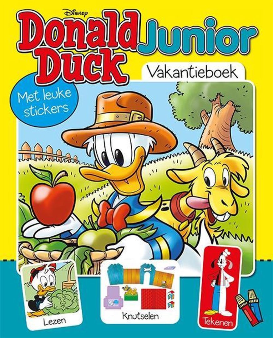 Donald Duck Junior Vakantieboek 2019Hiep hoera, het is zomer! Tijd om iets leuks te doen. Lees mee in het allereerste Donald Duck junior vakantieboek. Kom naar de boerderij van oma Duck. Speel buiten met Kwik, Kwek en Kwak. Met Goofy is het natuurlijk weer lachen. En kun jij Donald Duck nog niet tekenen? Bekijk dan de tekenles!Het Donald Duck junior vakantieboek is er voor Donald-ukjes vanaf 5 jaar die al (bijna) kunnen lezen! Propvol stripverhalen, puzzels en zoekplaatjes om thuis of op vakantie te bekijken. Mis ‘m niet!Extra bij dit vakantieboek:Sportstickers van Kwik, Kwek en Kwak énde enige echte Pluto’s hondenhok bouwplaat