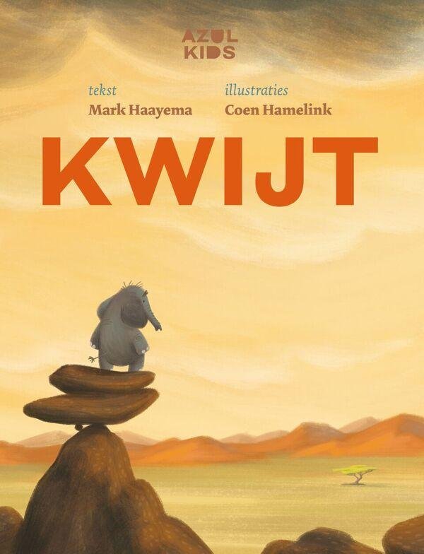 In een land waar de zandkorrels bibberen van de hitte, woont het olifantje Dex. Elke ochtend haalt zijn moeder een heerlijk ontbijtje voor hem. Als ze op een dag wel heel lang wegblijft, gaat Dex naar haar op zoek. Hij krijgt hulp van het slimme baviaantje Ko. Al gauw komen ze erachter dat Dex niet de enige is die iets kwijt is.Van Mark Haayema verschenen eerder bij Azul Kids de succesvolle kinderboeken De vriendelijke draak (tweede druk 2015) en Oma, mag ik mijn pop terug? (2015), geïllustreerd door kunstschilder en illustrator Marius van Dokkum. Voor Kwijt werkte Mark Haayema samen met illustrator, grafisch ontwerper en animator Coen Hamelink. Kwijt is tot stand gekomen in samenwerking met het International Fund for Animal Welfare (IFAW). NUR 200