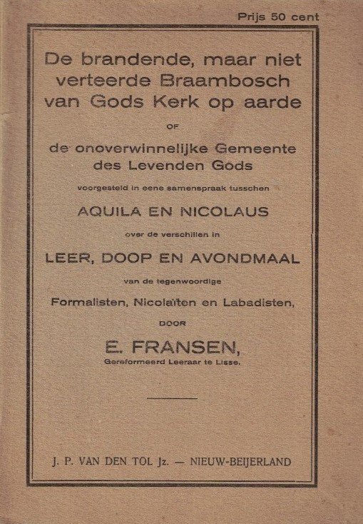 | Titel: | Fransen, E.-De brandende, maar niet verteerde Braambosch van Gods kerk op aarde |