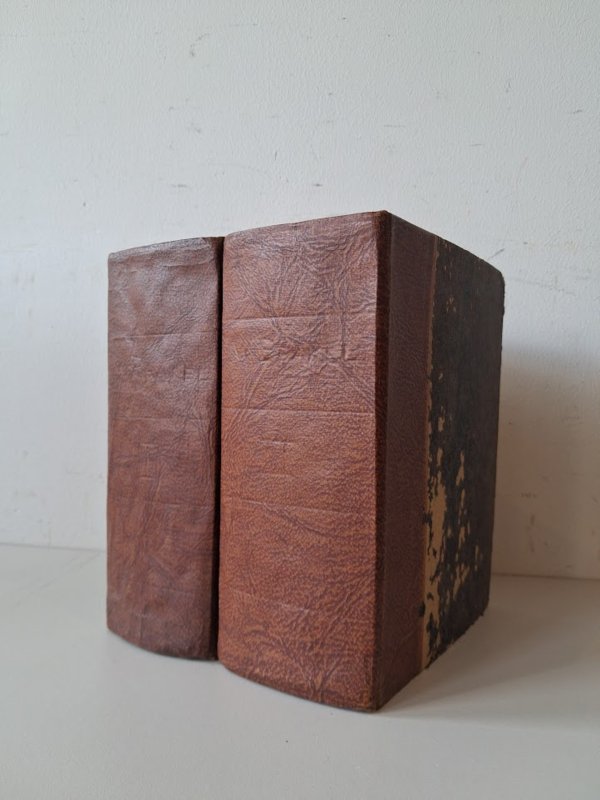 | Bijzonderheden: | Opnieuw ingebonden, platten iets kaal, boekblokken afgesneden zonder tekstverlies, in goede staat. |