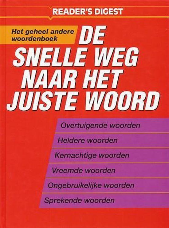 De snelle weg naar het juiste woord onder redactie van drs. Nico Groen en drs. Marjon Aardema is een uitgave van Reader's Digest. Deel 1: De snelle weg naar het juiste woord Deel 2: Woordenboek van moeilijke en minder gangbare woorden. |
