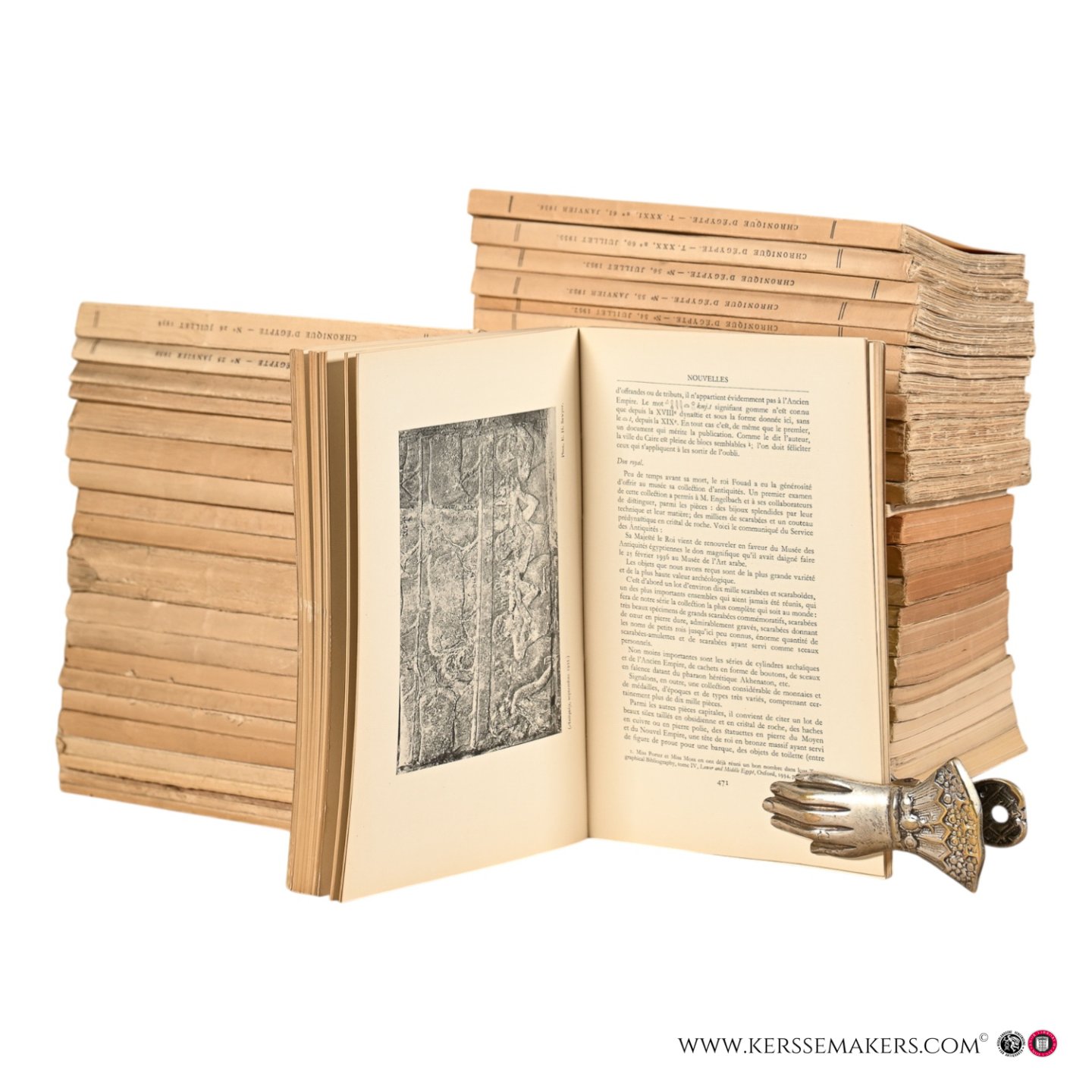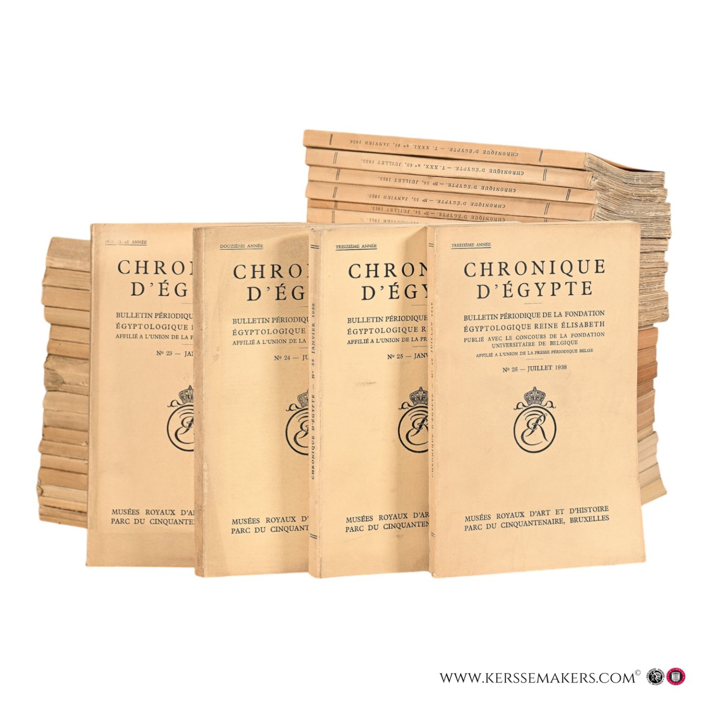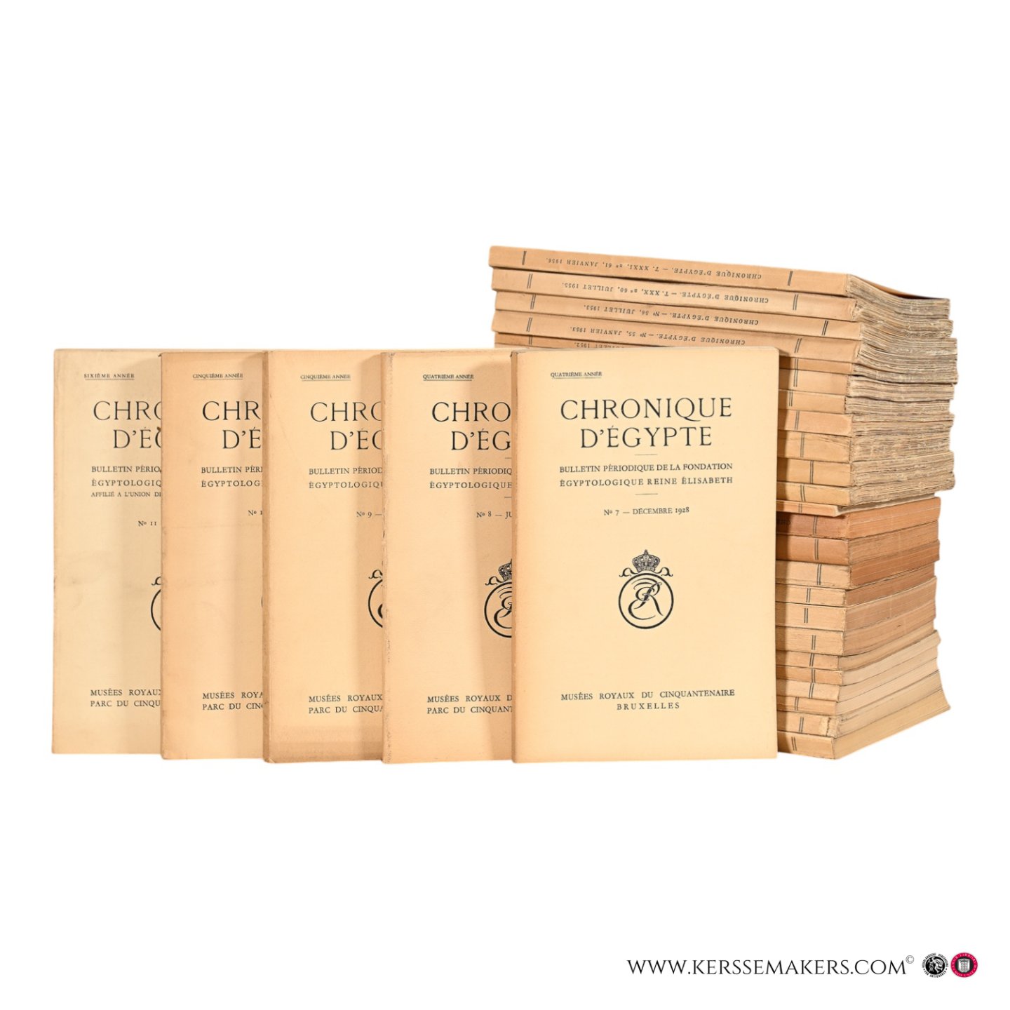 | Titel: | Chronique d'Egypte. Bulletin periodique de la fondation Egyptologique Reine Elisabeth. Volumes present are. 1-3, 5, 7-14, 17-27, 29-40, 42-47, 49, 51, 54-56, 60-61. 1925-1956. |