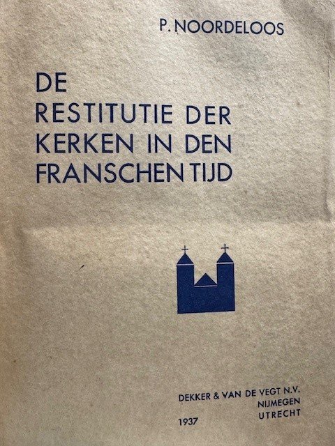 | Meer info: | De restitutie der kerken in den Franschen tijd. Nijmegen, Dekker & Van de Vegt, 1937, XII,524pp. uncut, original paper softcover binding. |