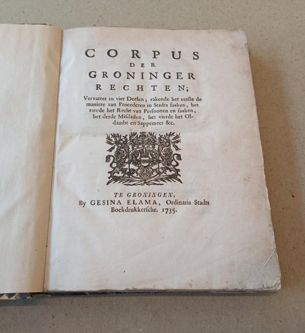 | Titel: | Corpus der Groninger Rechten. Vervattet in vier Deelen: rakende het eerste de maniere van Procederen in Stads saaken, het twede het Recht van Persoonen en saaken, het derde Misdaden, het vierde het Oldambt en Sappemeer &c. |