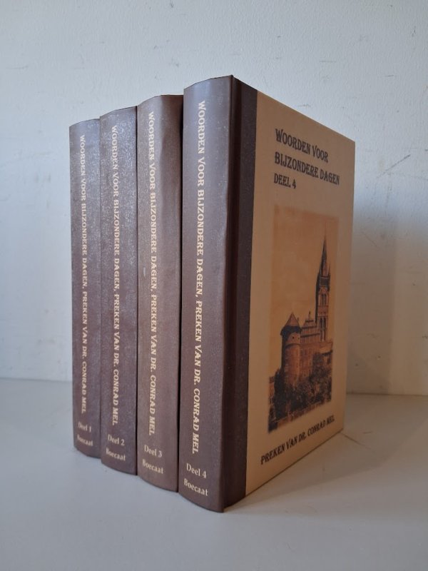 Woorden voor bijzondere dagen, deel 1 t/m 4, 98 preken van dr. Conrad Mel, een Duitse, bevindelijke predikant, die van 1666 tot 1733 geleefd heeft.