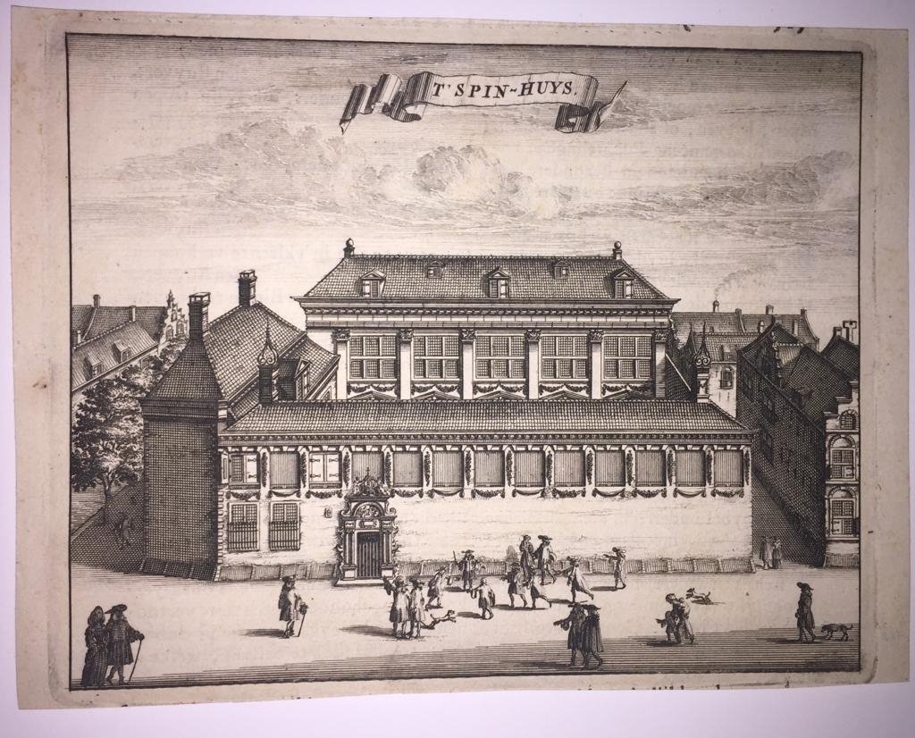 ![after Caspar Commelin (1636-1693)C - [Antique print, etching] T' Spin-Huys (Het Spinhuis in Amsterdam), published ca. 1726.](https://images.boekwinkeltjes.nl/medium/xYgtwTfCuxv1JlhiBmBQ.jpeg)