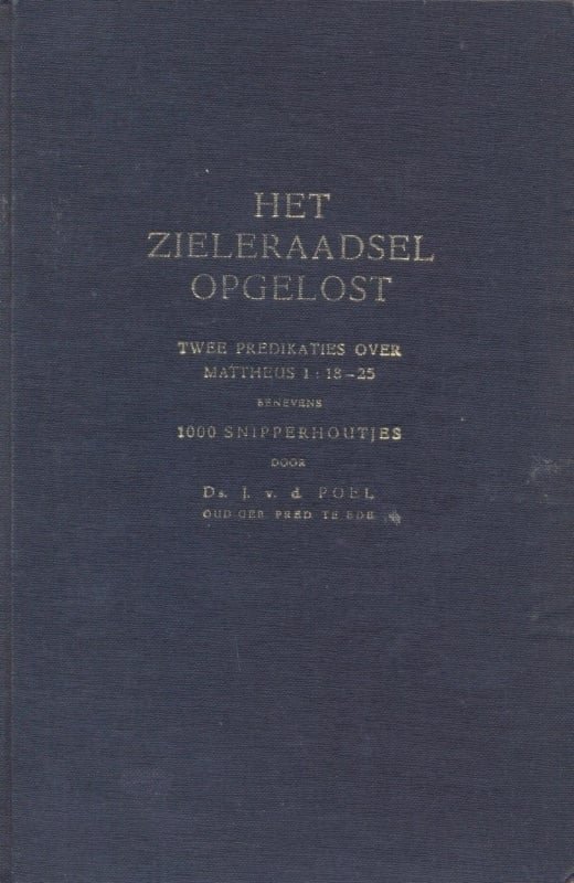 Het zieleraadsel opgelost van ds. Joh. van der Poel bevat twee predikaties en 1000 snipperhoutjes. De twee predikaties handelen over Mattheus 1:18-25. Met een voorwoord van Leen Visser te Elspeet. |