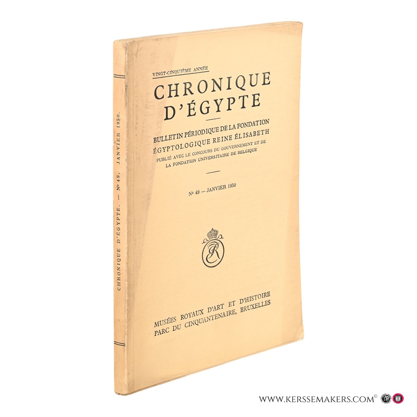 | Titel: | Chronique d'Égypte. Bulletin périodique de la fondation Égyptologique Reine Élisabeth. Vingt-cinquième année. No 49 - janvier 1950. |
