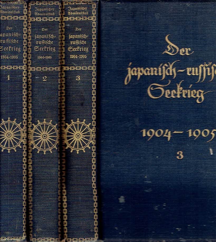 - Three-volume set. - 1 - Die Bekämpfung der russischen Streitkräfte in Ryoyun - 2 - Das Zusammenwirken der Flotte mit dem Landheere und die Operationen gegen das Russische Geschwader in Wladiwostok vom Kriegsbeginn bis zum Ende des Jahres 1904 - 3 - Die Schlacht in der japanischen See und die Tätigkeit der Flotte bis zum Friedensschluss - Bindings a few spots; name/signature on all 3 titles, otherwise a good complete set