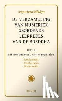 | Meer info | Annotatie Dit boek bevat de integrale Nederlandse standaardvertaling van het vierde deel van de Aṅguttara-Nikāya, ‘De verzameling van numeriek geordende leerredes’ van de Boeddha. Flaptekst De Aṅguttara-Nikāya is in de traditionele telling – na de Dīgha-, de Majjhima- en de Saṃyutta- Nikāya – de vierde verzameling (nikāya) van de Sutta-Piṭaka: de ‘mand’ (piṭaka) van leerredes (sutta’s) die aan de historische Boeddha en zijn belangrijkste leerlingen worden toegeschreven. Deze verzameling maakt deel uit van de Pali-Canon en vormt samen met de Vinaya-Piṭaka (de ‘mand’ van de orderegels) en de Abhidhamma-Piṭaka (de ‘mand’ met scholastieke teksten) het corpus van gewijde geschriften van de Theravāda. Deze Pali-Canon of Tipiṭaka (‘drie manden’) bevat de oudste bewaard gebleven geschriften van de boeddhistische traditie. |