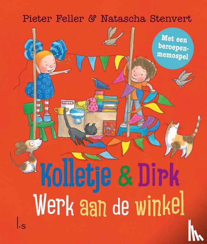 | Meer info | Annotatie Twaalf nieuwe Kolletje & Dirk-verhalen: over beroepen. Met een beroepenmemospel! Flaptekst In Werk aan de winkel van Pieter Feller en Natascha Stenvert (ill.) leren Kolletje en Dirk alles over beroepen – het thema van de Kinderboekenweek 2021. |