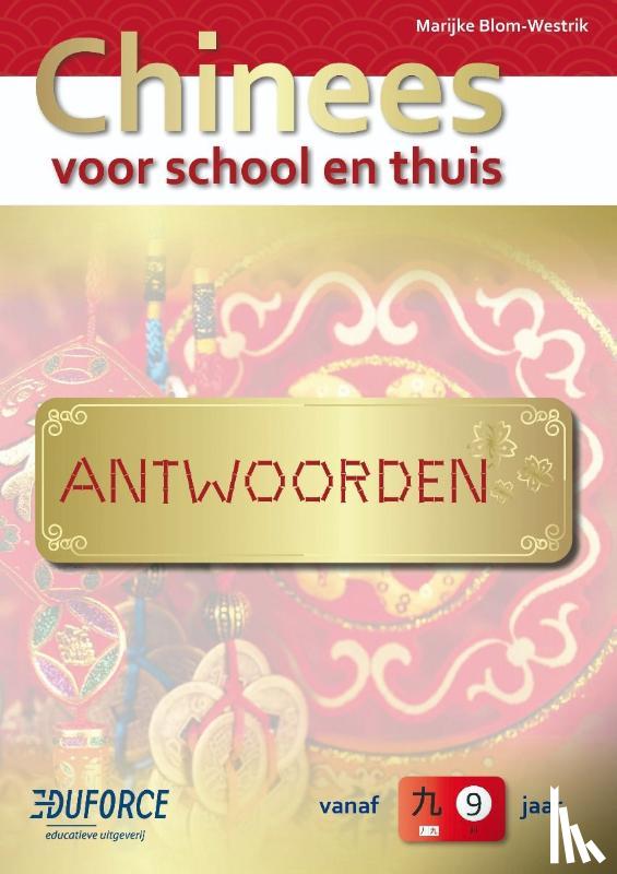 | Meer info | Flaptekst In dit boek vind je de antwoorden op de vragen en opdrachten uit het lesboek Chinees voor school en thuis. Met het lesboek wordt zelfstandig gewerkt aan het leren herkennen, luisteren, uitspreken en schrijven van Chinese karakters. Zo kiest de leerling een eigen Chinese naam, leert tellen tot 100, ontdekt Chinese klanken en gaat Chinese zinnen schrijven. |