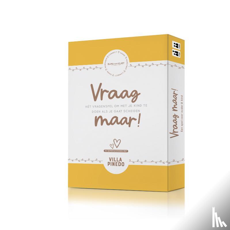 | Meer info | Annotatie Hét vragenspel voor een persoonlijk gesprek met je kind over scheiden. Met de kaarten breng je op een makkelijke manier het gesprek op gang, en leer je nieuwe dingen terwijl je de band versterkt. Flaptekst Vraag Maar! Speciale uitgave met Villa Pinedo. |