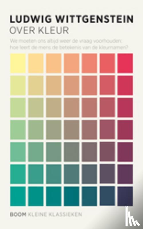 | Meer info | Flaptekst In de nalatenschap van Ludwig Wittgenstein (1889-1951) vond men een bundel opmerkingen over de kleuren. Met vele voorbeelden verheldert Over kleur de logica van onze kleurbegrippen. Niets lijkt zo vanzelfsprekend als kleur, maar Wittgenstein toont vooral de begrensdheid van de taal waarmee wij over dit fenomeen spreken. |