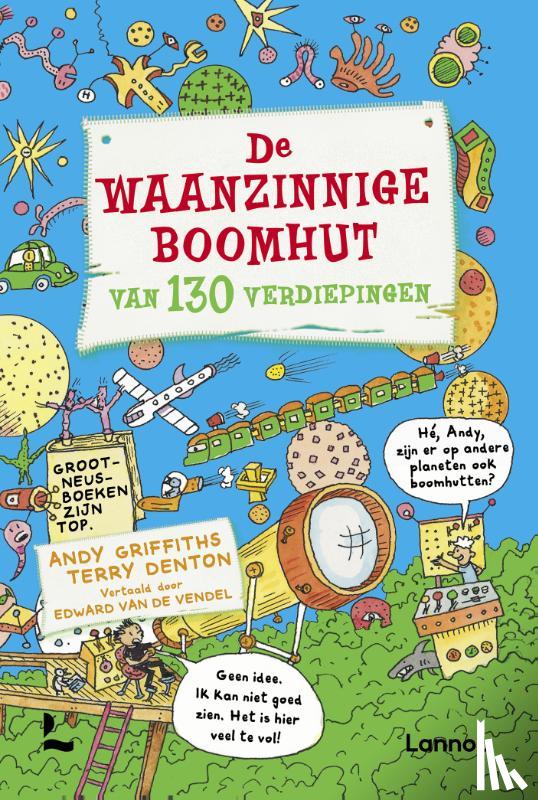 | Meer info | Flaptekst Andy en Terry hebben weer dertien verdiepingen toegevoegd aan hun boomhut en die is nu nog waanzinniger! Er is een zeepbellenblazer, een GRIJPINATOR, een tijdverspilverdieping en een wc-papierfabriek. Andy en Terry worden naar de ruimte ontvoerd door een gigantische vliegende oogbol. Daar moeten ze een planeet redden van een modderslurpende moeraspad! Dus waar wacht je op? Kom naar boven! Boordevol knotsgekke illustraties van de eerste tot de honderddertigste verdieping. |