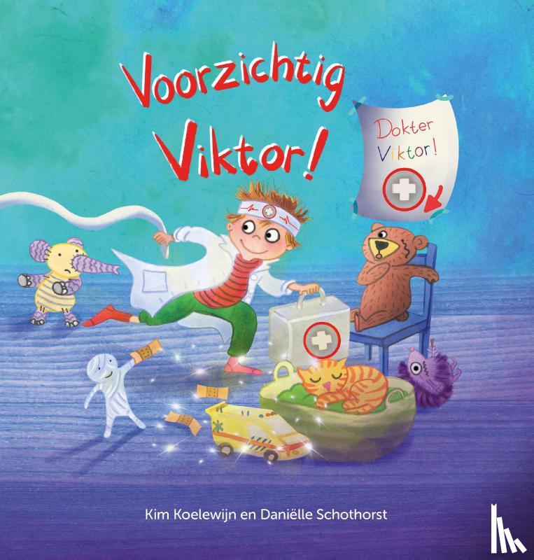 | Meer info | Flaptekst Viktor heeft het druk, want vandaag is hij de dokter. Zijn liefste knuffels zijn de patiënten en ze mankeren allemaal wat anders. Gelukkig zit zijn EHBO-koffer vol met spulletjes waarmee hij hen kan helpen. En als zijn vader in de keuken een ongelukje heeft, weet dokter Viktor direct wat hij moet doen! |