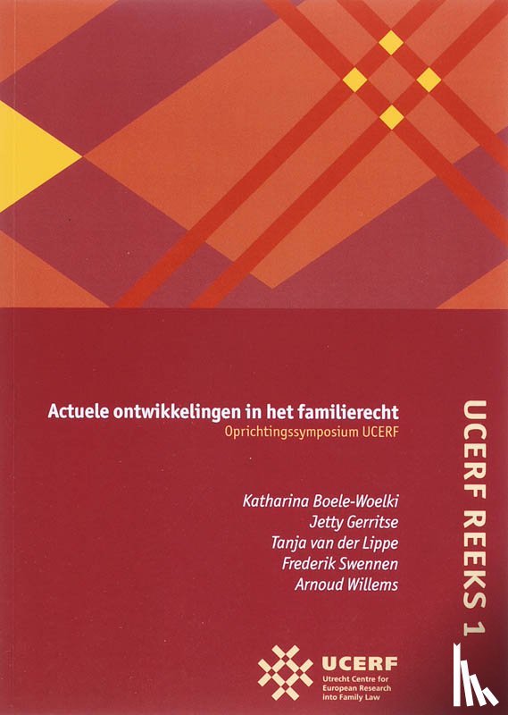 | Meer info | Flaptekst Het Utrecht Centre for European Research into Family Law, afgekort UCERF, is onderdeel van het Molengraaff Instituut voor Privaatrecht van het departement rechtsgeleerdheid van de Universiteit Utrecht. Er bestaat een groeiende belangstelling voor de beoefening van het familie- en erfrecht mede als gevolg van de vele veranderingen die zich in de afgelopen tien jaar hebben voorgedaan. UCERF beschikt thans over een betrekkelijk grote groep onderzoekers, die samen het kenniscentrum vormen. |