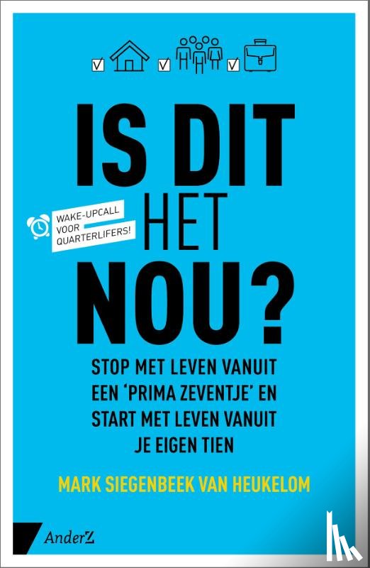 | Meer info | Flaptekst Je bent quarterlifer. Hoogopgeleid, tussen de 24 en 36 jaar, energiek, ambitieus en gedreven. Op papier heb je alles prima voor elkaar: een goede baan, een mooi huis, een leuke vriendenkring ... En toch knaagt er iets: is dit het nou? Steeds vaker bekruipt je het gevoel dat er veel meer uit het leven te halen valt; dat je gelukkiger zou kunnen zijn dan je nu bent. Maar waar begin je? Dit boek gaat over de innerlijke worsteling waar zoveel quarterlifers mee te maken hebben. Lees hoe je een crisis voorkomt en hoe je meer uit deze levensfase haalt, door succes los te koppelen van die ouderwetse carrièreladder en het een nieuwe, veel persoonlijkere betekenis te geven. Dit boek is een wake-upcall voor quarterlifers. Stop met leven vanuit een 'prima zeventje' en start met leven vanuit je eigen tien!-------------- 'Dit boek is een waar kompas voor de nieuwe generatie gelukszoekers. Mark heeft het beste wat er voorhanden is gebundeld voor diegenen die hun kwispelstaart kwijt zijn of nooit écht hebben ontdekt. Neem geen genoegen met een zeven in je leven: lees dit boek en ga er vol mee aan de slag!' -- Remco Claassen, trainer, spreker en bestsellerauteur.'Veel quarterlifers schrijven kansen al af voordat ze überhaupt een stap hebben gezet. Bijvoorbeeld omdat ze bang zijn wat anderen zullen vinden of omdat ze de dingen veel te veel doordenken. Terwijl het leven juist bestaat uit dingen doen en op je bek durven gaan. Dit boek helpt je over de drempel!' -- Hans Ober (29), Founder van TicketSwap'Als werkgever zie ik veel quarterlifers worstelen met keuzestress en een gebrek aan koers. Dit boek helpt je persoonlijk leiderschap te tonen en je levensdoelen te ontdekken. Een aanrader voor iedere millennial met ambitie!' -- Peter van der Reijden (35), Managing Director bij Experius |