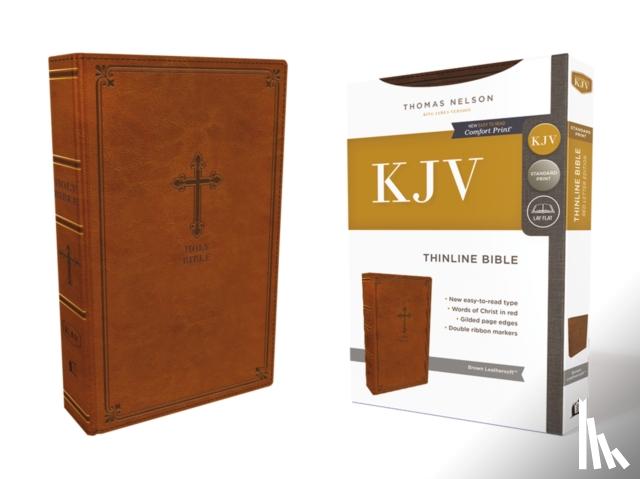 Thomas Nelson - KJV, Thinline Bible, Leathersoft, Brown, Red Letter, Comfort Print