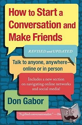 | Meer info | Annotatie Shows how to strike up a conversation with anyone in almost any situation, and provides tips on overcoming shyness, making new friends, and become more confident and successful Flaptekst Don Gabor updates his classic guide to the art of conversation, featuring a whole new section on navigating online networks. |