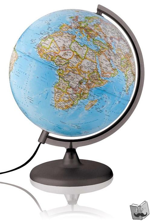 | Meer info | Flaptekst Deze verlichte wereldbol/globe van National Geographic (30 cm) met blauwe oceaan bevat meer dan 3800 plaatsnamen in het Nederlands. De tekst is duidelijk en elk land is afgebeeld in een aparte kleur, met een donkere rand langs de grenzen om de politieke kaart te benadrukken. Diepzeetroggen en bekkens zijn benoemd in de oceanen, samen met pijlen die de hoofdrichtingen van de zeestromingen aanduiden. Kleurschakeringen worden gebruikt om de diepte van de oceanen weer te geven. |