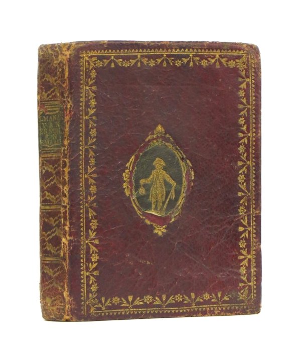 | Bijzonderheid: | 1792 (18) 8 (2) 2 130 (2) p. Origineel goud-bestempeld Leer, 16° (Wat los in de band, het achterplat mist het centrale ornament met goudbestempelde afbeelding, pagina 106 geplakt. Geïllustreerd met 6 dubbel-paginagrote gravures.) |