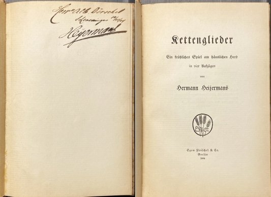 HEIJERMANS, Hermann - Kettenglieder. Ein fröhliches Spiel am häuslichen Herd in vier Aufzügen. (Met gesigneerde opdracht).