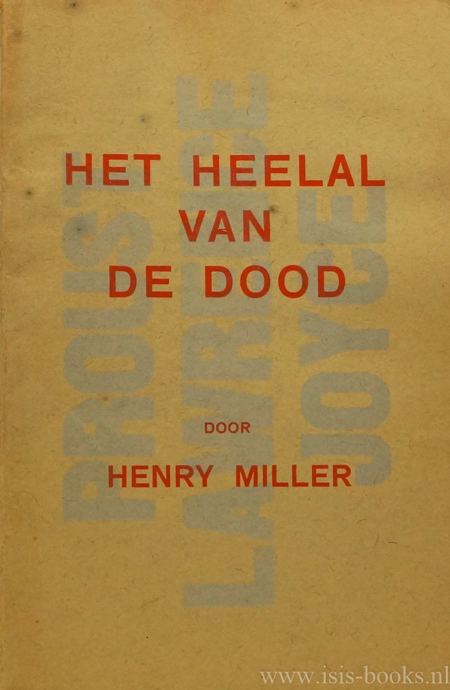 MILLER, HENRY - Het heelal van de dood. Een studie over Lawrence, Proust en Joyce. Vertaling van J.d.H. Ontwerp omslag: H.N. Werkman.