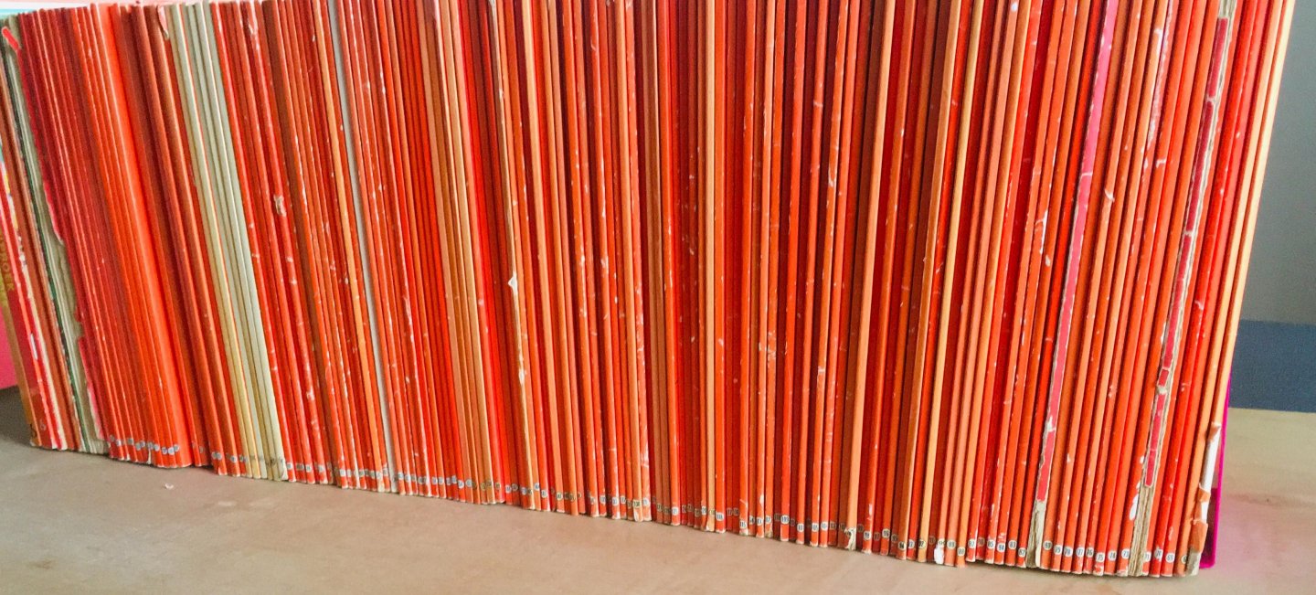 | Meer info | 156 ALBUMS, 23, 29, 46, 67 t/m 202, 205, 206, 208, 209, 211, 216, 231, 241, 246, 273, 275. Waarvan 46 1e drukken. In deze serie zitten ook een aantal speciale albums: De mollige marmotten (Milky Way), Fata Morgana (W.v.d.Steen 75 jaar), De stenen broden (Dash), Witte zwanen zwarte zwanen (Albert Hein 100 jaar), Knokken in Knossos (Waldkorn), De Keizer Kraker, Vakantie album (1977) (Smarties), Familiestripboek 1994, Familiestripboek 1999 |