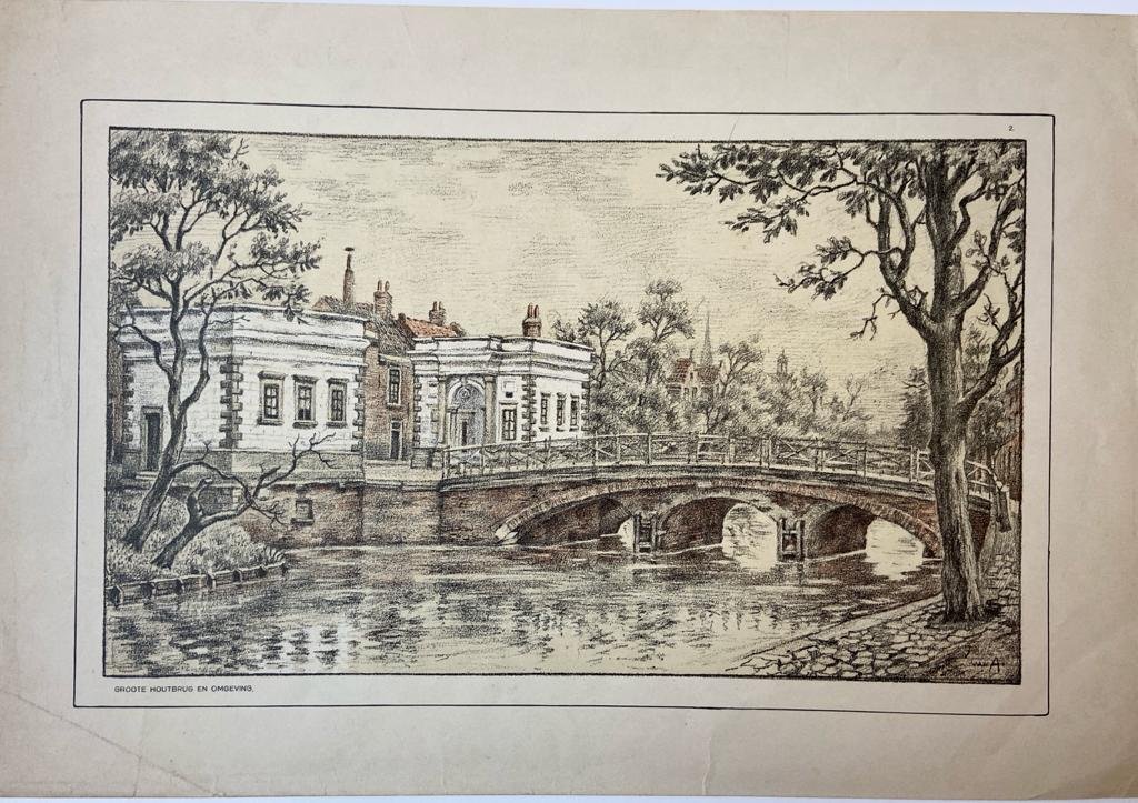 Alff, Paul van (1895-1962) - [Lithography/litografie] "Groote Houtbrug en omgeving".