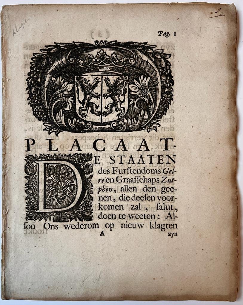 Staaten des Furstendoms Gelre en Graafschaps Zutphen - [Pamphlet, Gelderland, 1756] Publicatie. Placaat. De Staaten des Furstendoms Gelre en Graaffschaps Zutphen, ...alsoo ons wederom op nieuw klagten zyn voorgekomen, dat (...) heetvelden in den brand te steeken (...) met het oogmerk haare schaape...