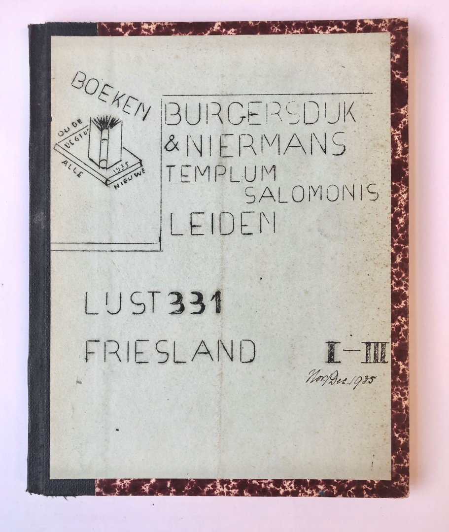 - [Sales catalogue Leiden, Friesland, 1935] Three Bulletins Burgersdijk & Niermans Templum Salomonis Leiden, Lijst 331 Friesland, I-III, 1935, each about 17 pp.