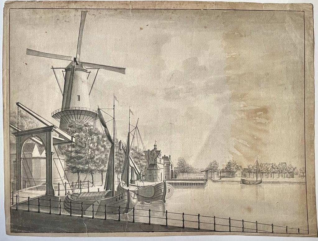 | Titel: | Antique drawing, watercolor I View of Delft with the Schiedamse and the Rotterdamse Poort, 19th century, 1 p. |