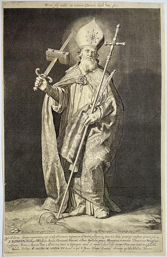 Cornelis Bloemaert II (1603–1692), after Abraham Bloemaert (1564–1651) - [Antique print, engraving] Saint Bonifacius, published ca. 1626, 1 p.